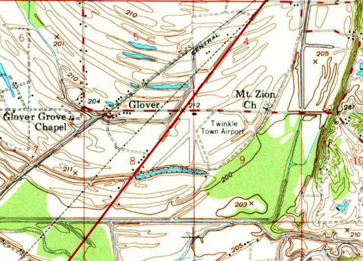 The 1988 USGS topo map depicted “Twinkle Town Landing Field”