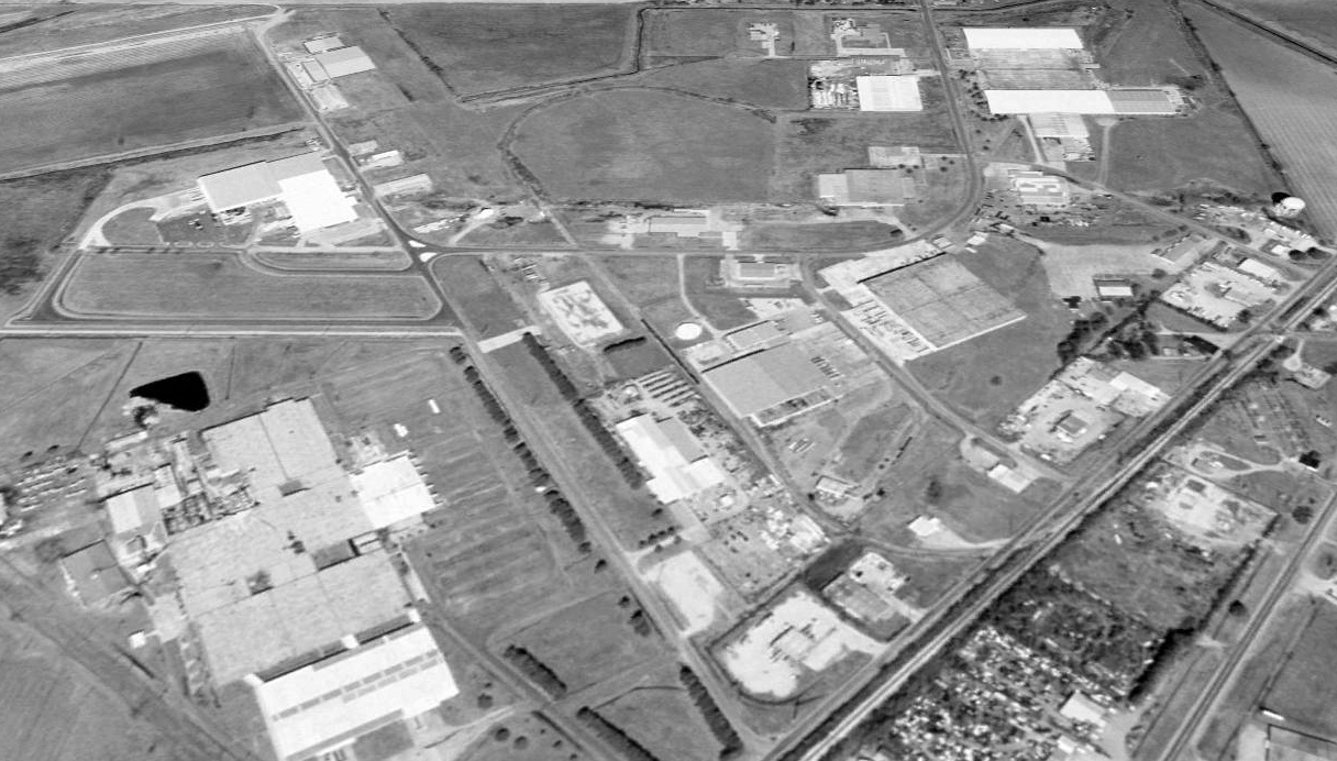 A circa 2004-2009 aerial view looking north at the former Oxford hangar.