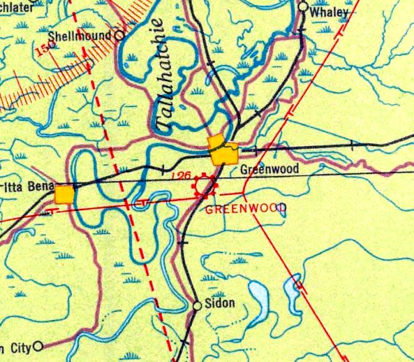 on the 1961 USGS topo map (from the University of Alabama Map Library).