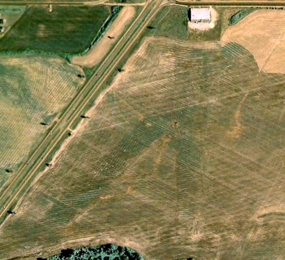 A 2017 aerial view looking north at the site of Greenwood Municipal Airport showed the alignment of 2 runways were still evident.
