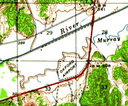 Oxford Airport, as depicted on the 1956 USGS topo map.