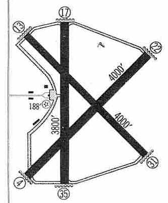 as a 411 acre irregularly-shaped property having 3 asphalt runways, the longest being the 4,000' northwest/southeast & northeast/southwest strips.