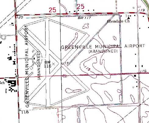 The site of the original Greenville Airport was depicted as an abandoned airfield