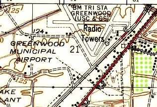 The site of the original Greenwood Municipal Airport is located west of the intersection of Route 49E & Route 175.