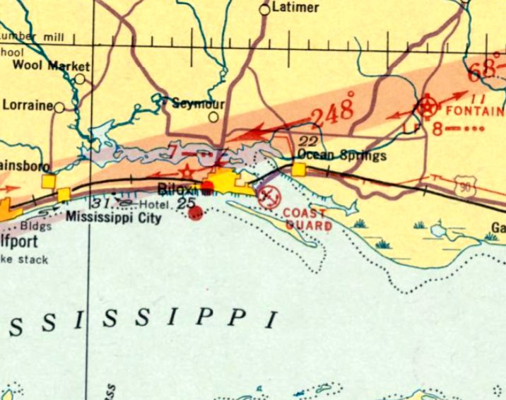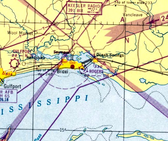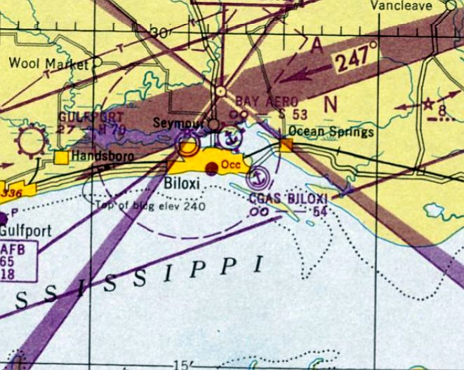 The last aeronautical chart depiction which has been located of Coast Guard Air Station Biloxi was on the February 1949 Mobile Sectional Chart.