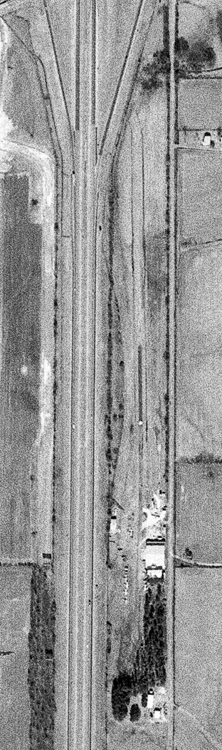 The runway outlines were still recognizable on a 2/13/55 aerial view (courtesy of Dallam Oliver-Lee).