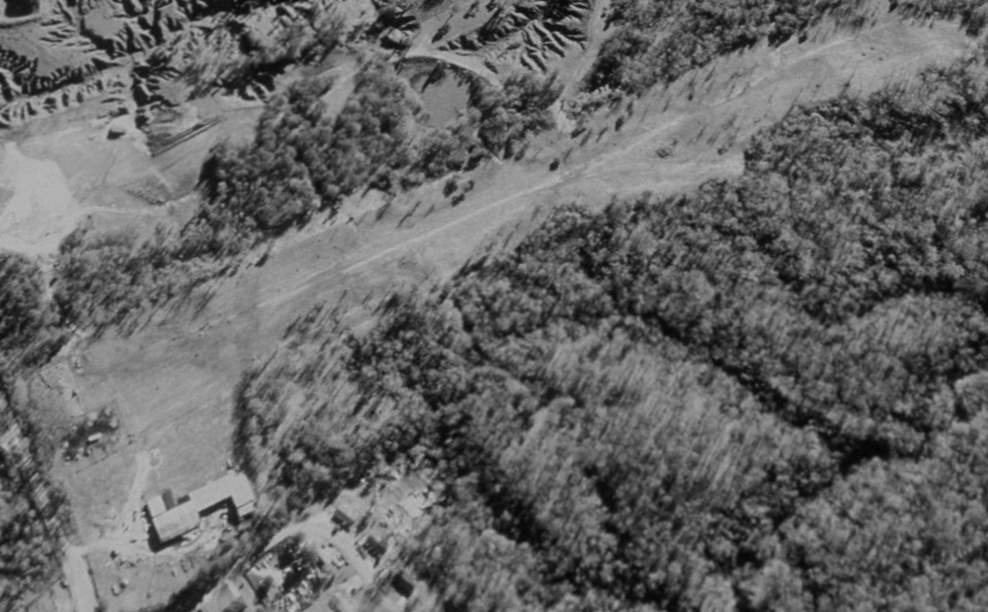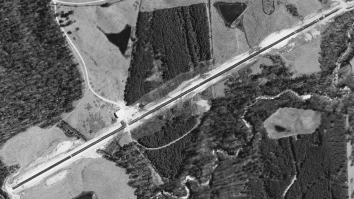 It appeared to show the airport just having been constructed, with a new asphalt northwest/southeast runway, and a hangar on the east side.