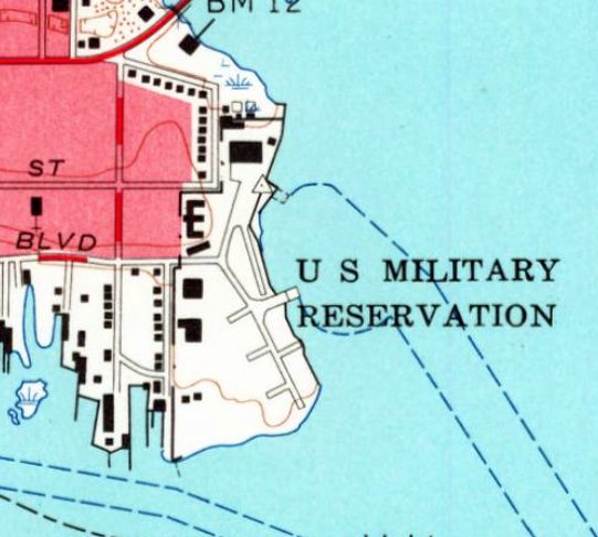 The former CGAS Biloxi was still labeled “US Military Reservation” on the 1954 USGS topo map,