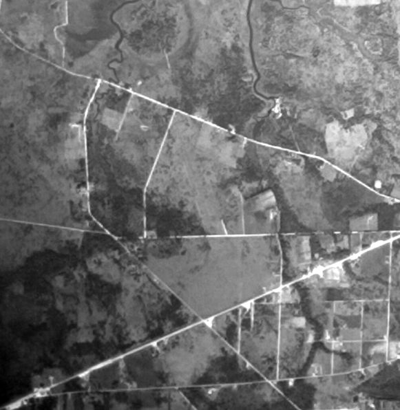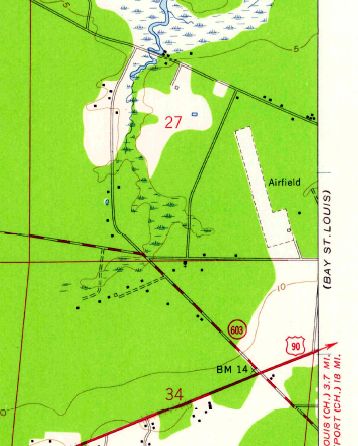 A 4/7/52 aerial view (courtesy of Dallam Oliver-Lee) showed a track had been built over the site of the original Pascagoula Airport,