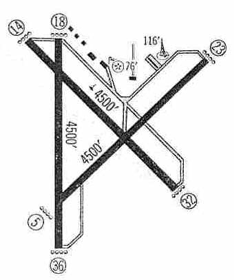 The 1962 AOPA Airport Directory described the Jackson County Airport as having three 4,500' bituminous runways: 18/36, 14/32, and 5/23.