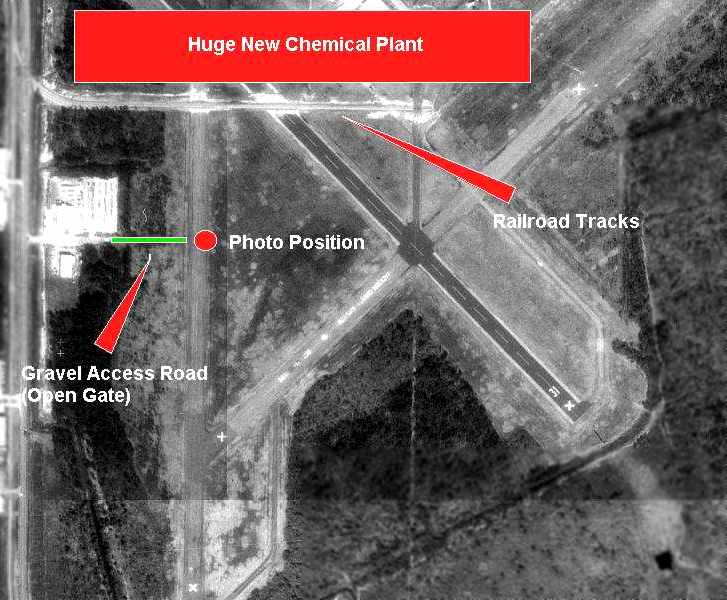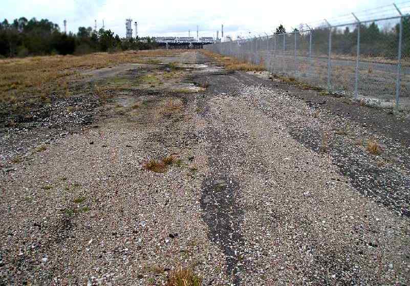 A February 2005 photo by Bret Kepner looking north along former Jackson County Airport Runway 18/36, toward the new chemical plant.
