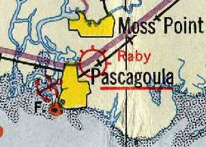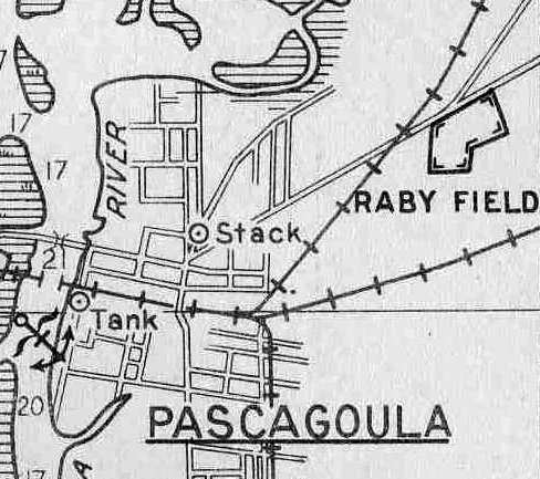 Raby Field, Pascagoula's first airport, was located adjacent to the northeast side of the town.