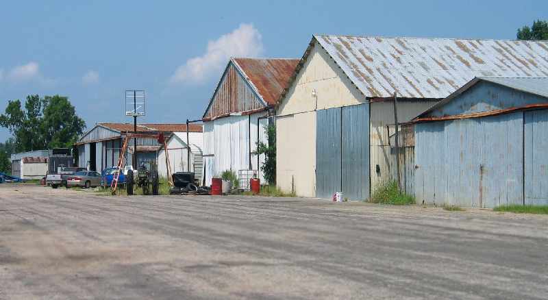 and only 2 buildings (hangars?) on the north side of the field,