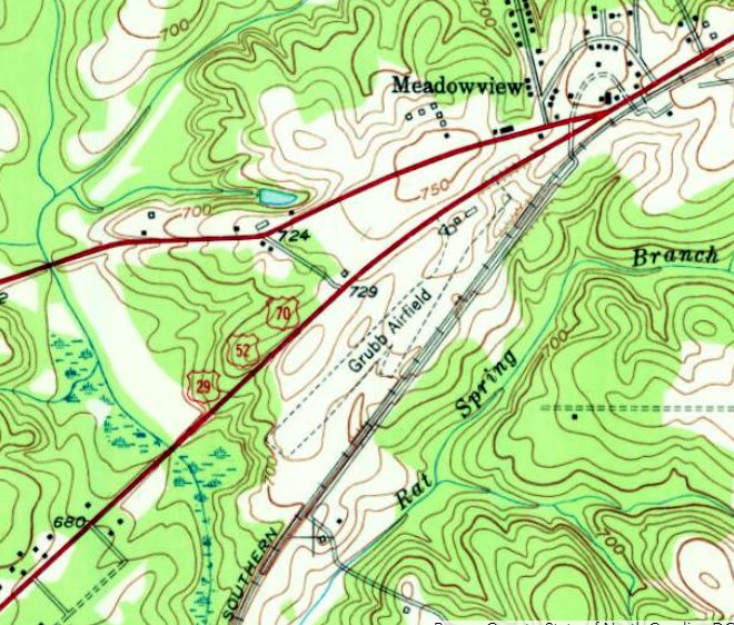 The original airport for the town of Mt. Airy was located to the southwest of the town.
