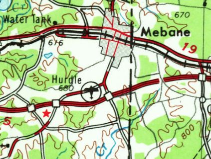 The 1984 USGS topo map depicted Hurdle Field Airport as having a single northeast/southwest runway.