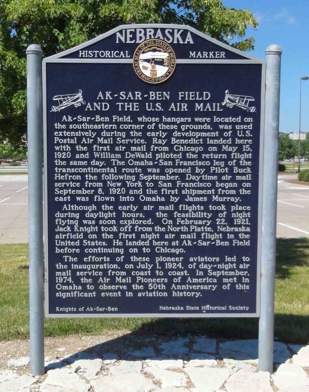 According to Mike McDonald, “The original airmail field in Omaha was Ak-Sar-Ben Field, developed by the Chamber of Commerce to entice the air mail service to come to Omaha.