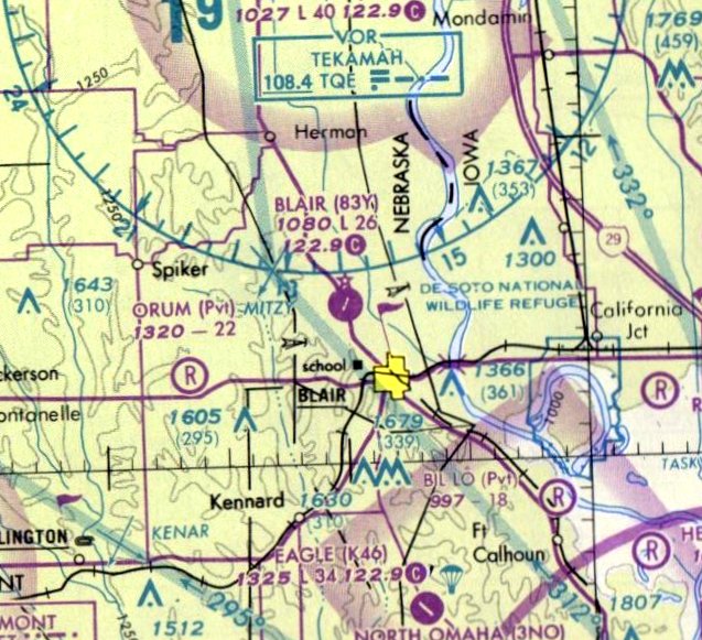 Weibe Airfield was not depicted at all on 1971/85/93/94/99 Omaha Sectional Charts.