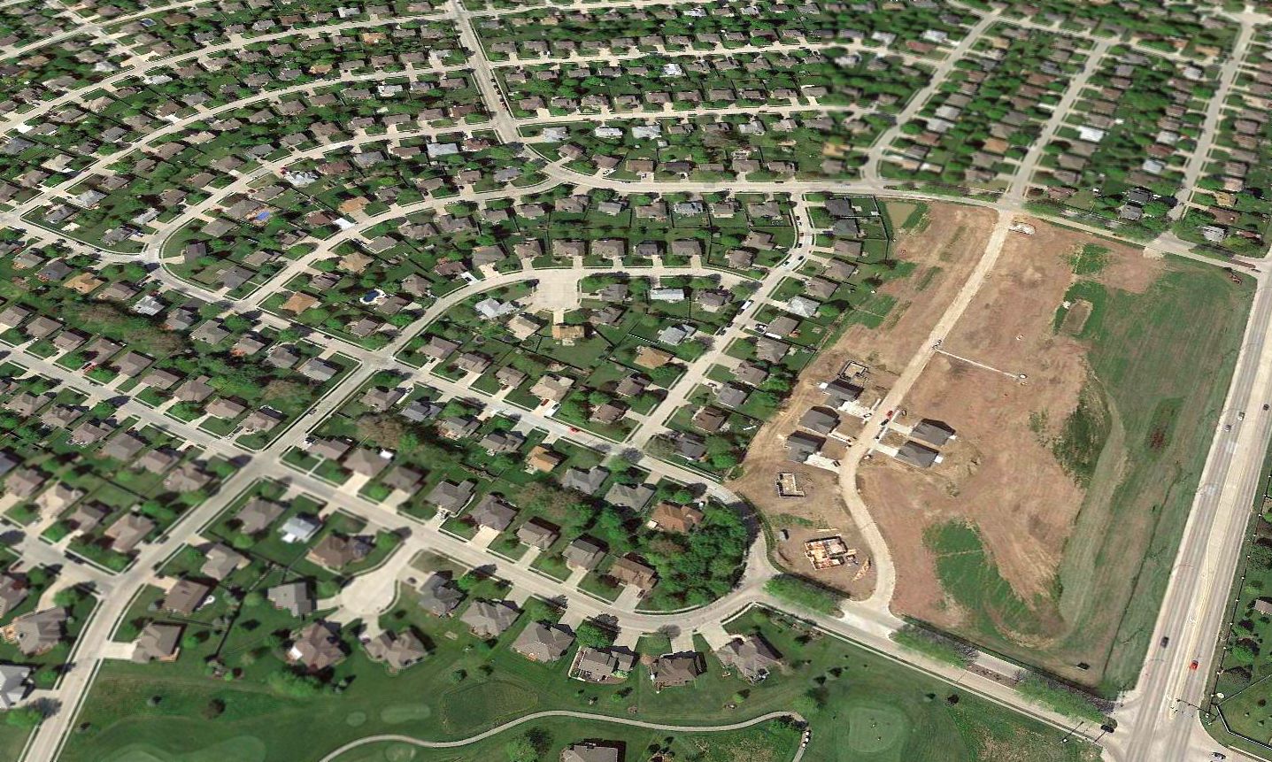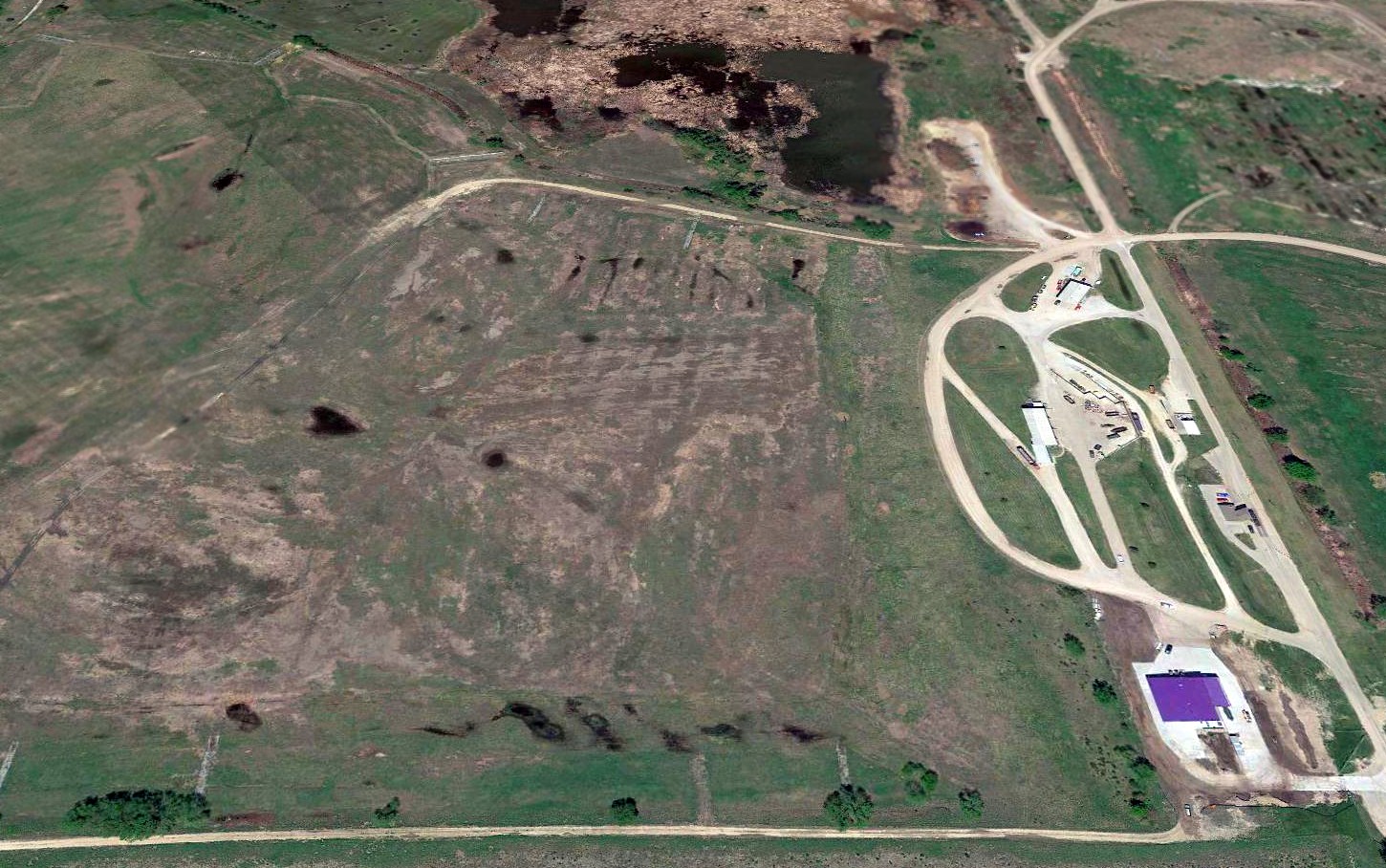 A 2017 aerial view looking north shows the site of Arrow Airport is no longer recognizable as a former airfield.
