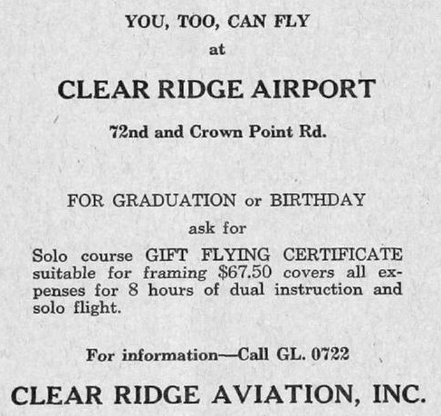 An advertisement for Clear Ridge Aviation from the 2/26/46 Omaha Benson High School newspaper (courtesy of Mike McDonald).