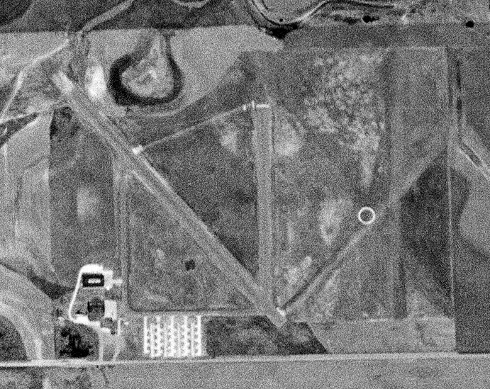 As seen in the 2002 USGS aerial photo, the site is not necessarily recognizable from the air as a former airfield,