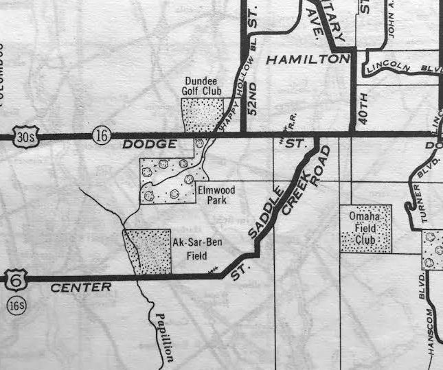 “Ak-Sar-Ben Field” was still depicted on a 1938 street map (courtesy of Kevin Walsh),
