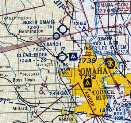 The location of Ak-Sar-Ben Field, as depicted on the 5/1/23 Commerce Department Airway Bulletin (courtesy of Mike Denja).