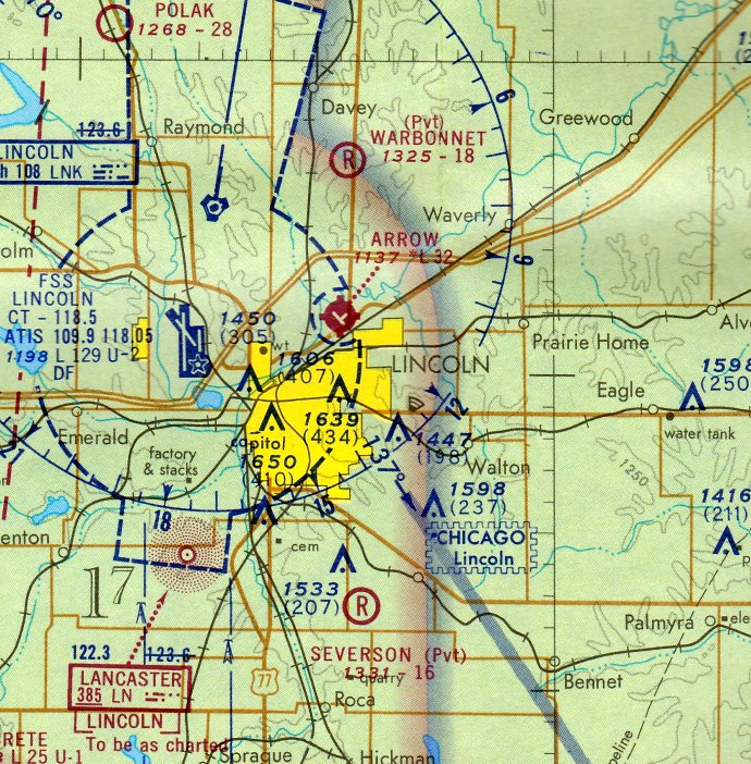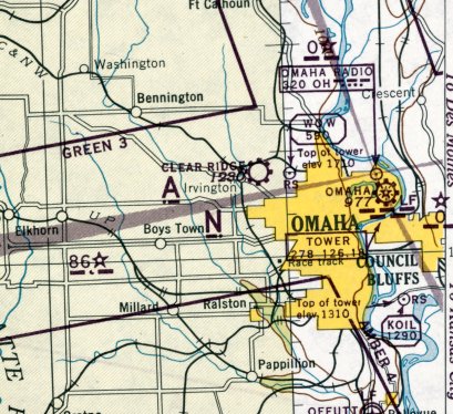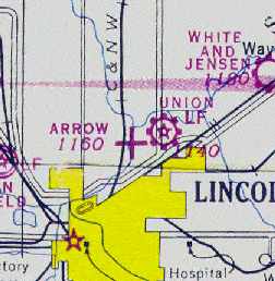 The Union Airport was not depicted at all on the October 1965 Lincoln Sectional Chart (courtesy of Ron Kunse),