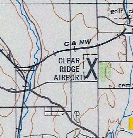 The last aeronautical chart depiction which has been located of Clear Ridge Airport was on the June 1955 Lincoln Sectional Chart.