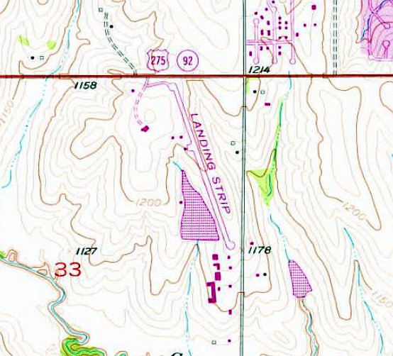 as the 1975 USGS topo map depicted a single paved northwest/southeast runway, generically labeled “Landing Strip”,