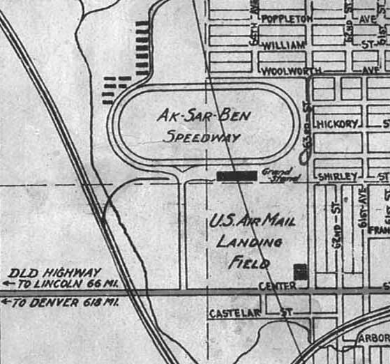 A 1923 map showing the “U.S. Air Mail Landing Field” adjacent to Al-Sar-Ben Speedway (Mike McDonald).