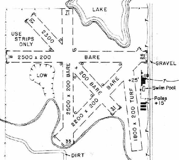 depicted Arrow Airport as having as having a total of 5 unpaved runways, with the longest being the 2,500' Runways 8/26 & 17/35.