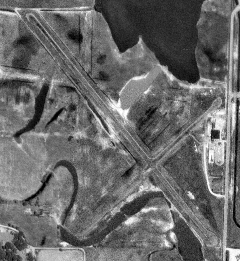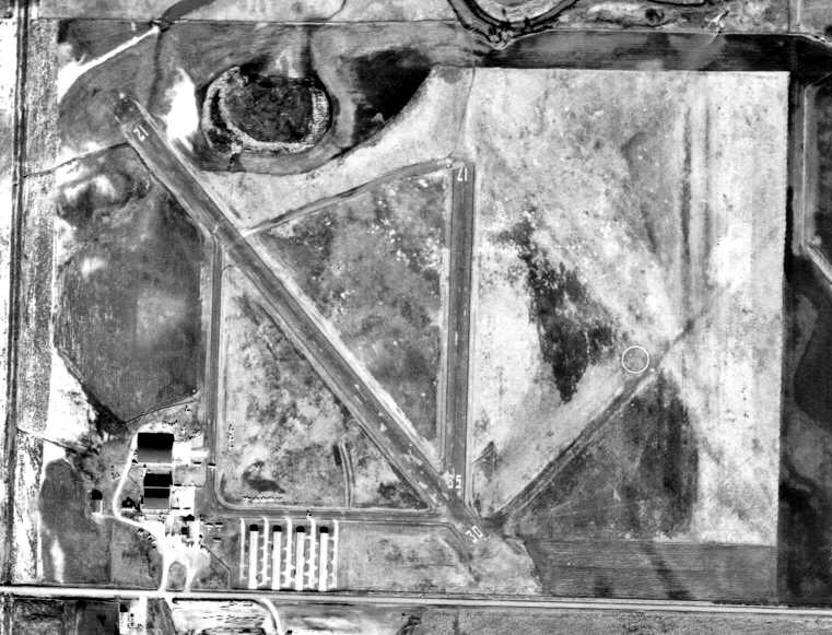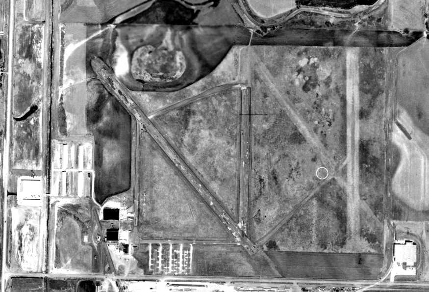 and remarkably the outline of the former paved Runway 12R/30L is still plainly recognizable in the grass, just to the left of the center of the photo.