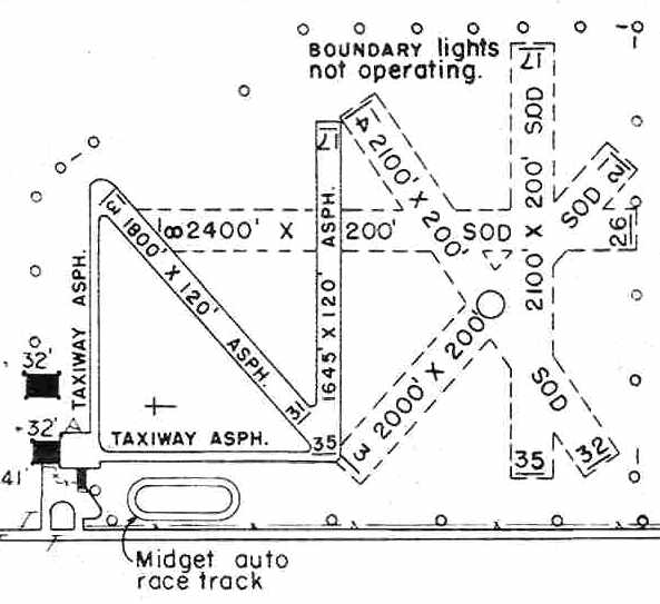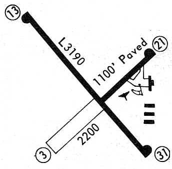 depicted the field as having a 3,300' paved Runway 13/31, along with a 2,400' crosswind runway of which 1,200' was paved.