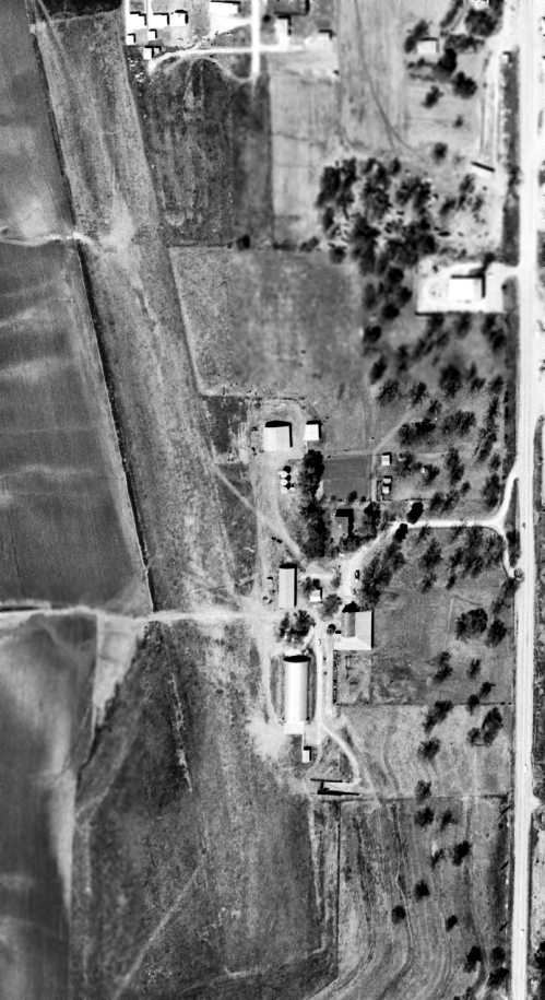An 8/14/53 USGS aerial view showed Bruning AAF remained intact, but did not show any sign of recent aviation usage.