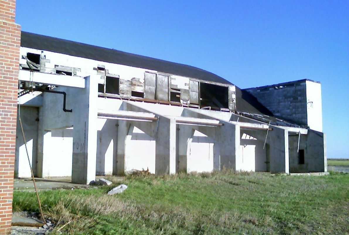 A circa 2013 closeup of the side of the former sub-depot hangar at Bruning.
