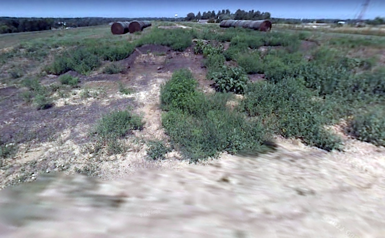 A pre-2022 photo of a remaining hangar on the north side of the Bruning Field site.