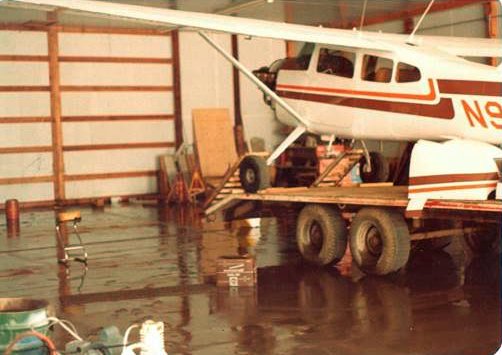 Carl recalled, “The nearby Platte River flooded in 1978. We winched our 185 up on a 5th-wheel trailer of mine where it rode out the flood.
