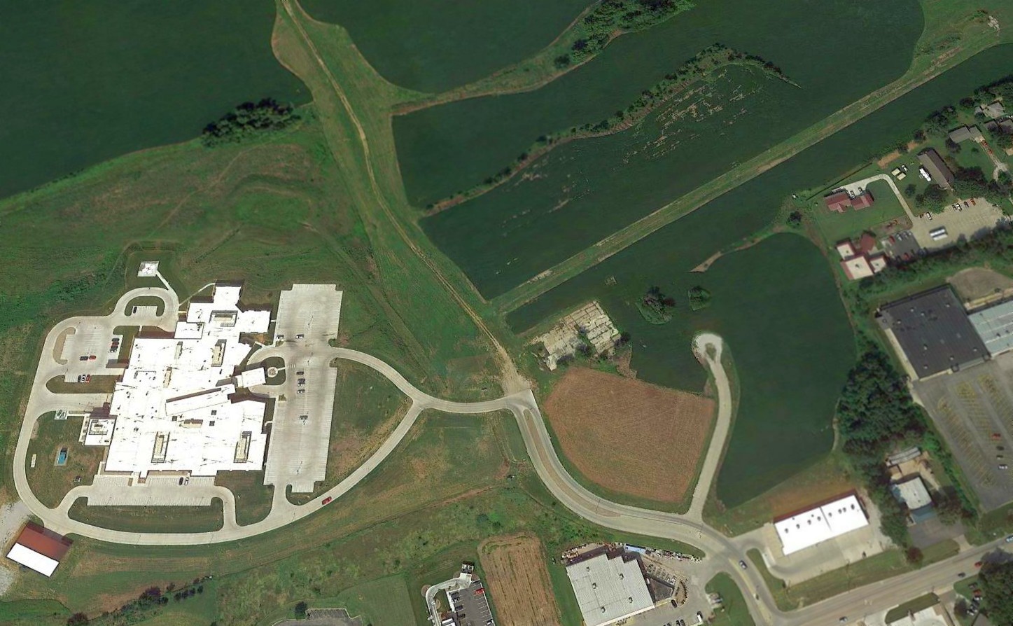 along with a single hangar, and a classroom/office building on the east side of the field.