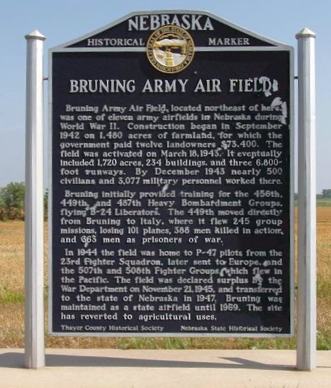 Bruning Army Airfield was built during WW2 for the Army Air Corps' 2nd Air Force.