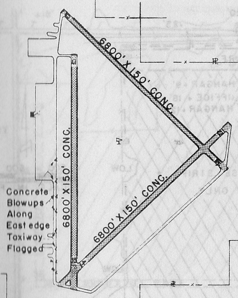 It depicted Bruning as a substantial airfield, having three 6,800' paved runways, taxiways,