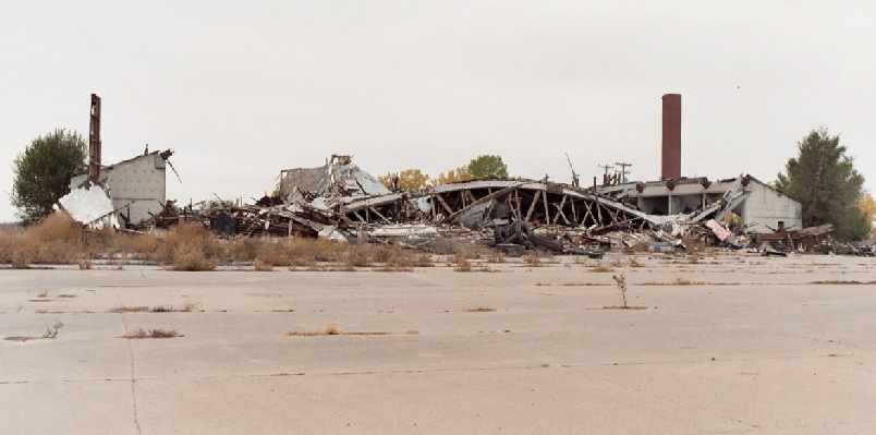 A 2003 photo by Bob Carlson of a remaining hangar at Bruning (at right),