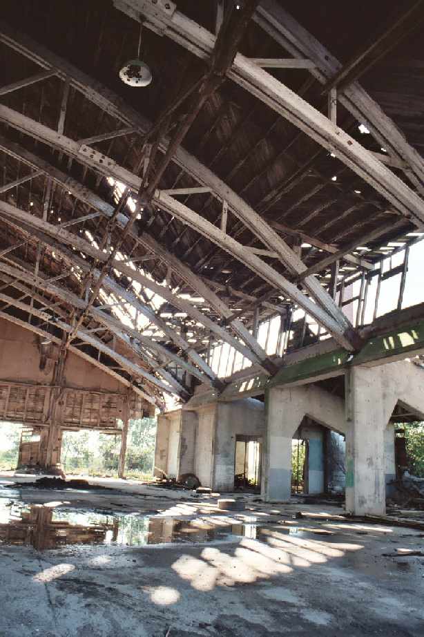 A sad sight - a 2003 photo by Bob Carlson of the interior of one of Bruning's remaining hangars (the former squadron hangar).