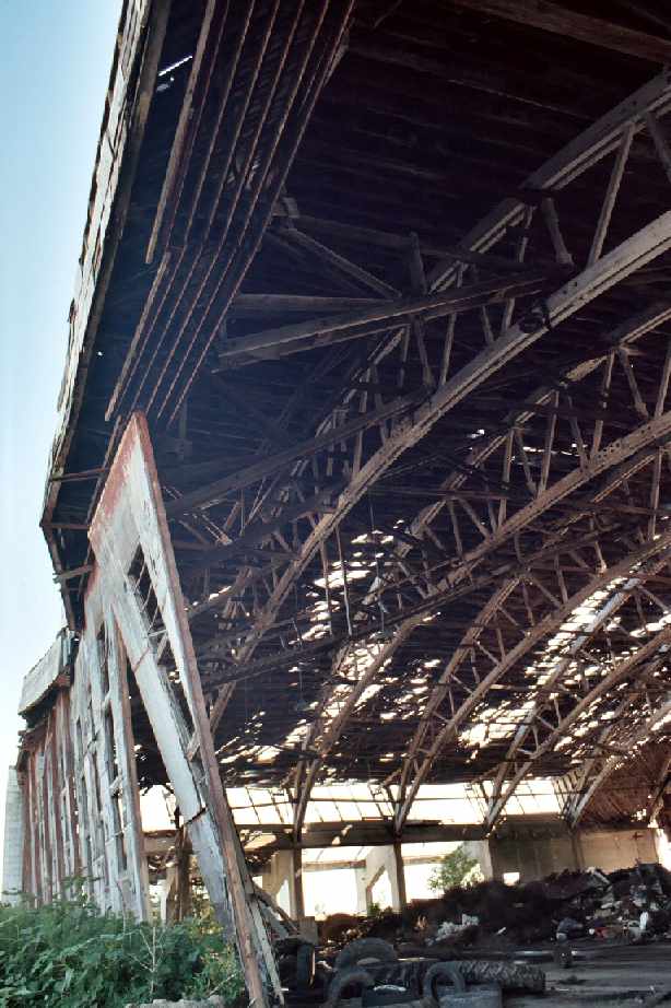 Another 2003 photo by Bob Carlson of the interior of one of Bruning's remaining hangars.