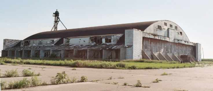 along with the walls of a second hangar (center background)