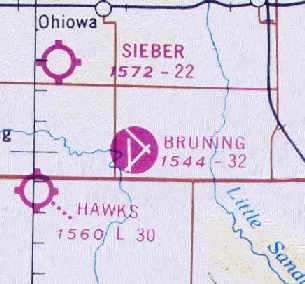 Bruning Airport was depicted on the November 1948 Lincoln Sectional Chart (courtesy of Chris Kennedy)