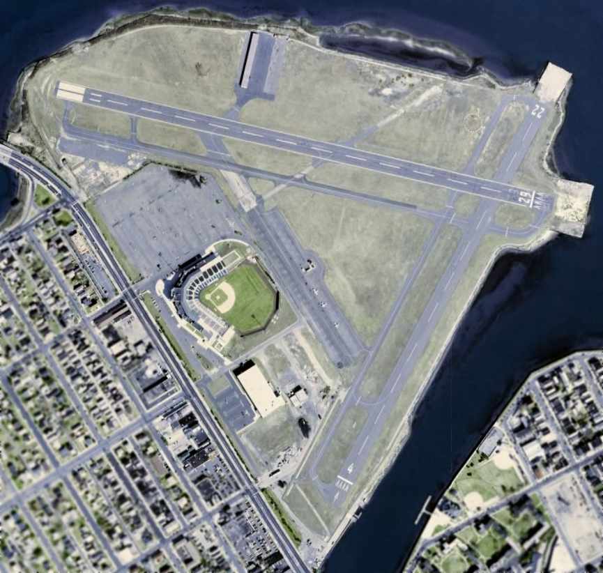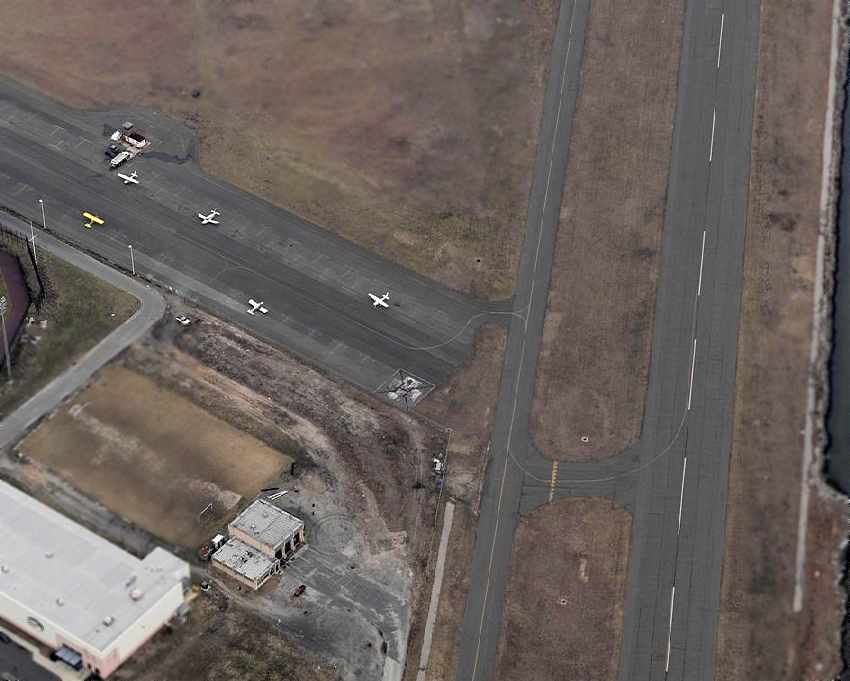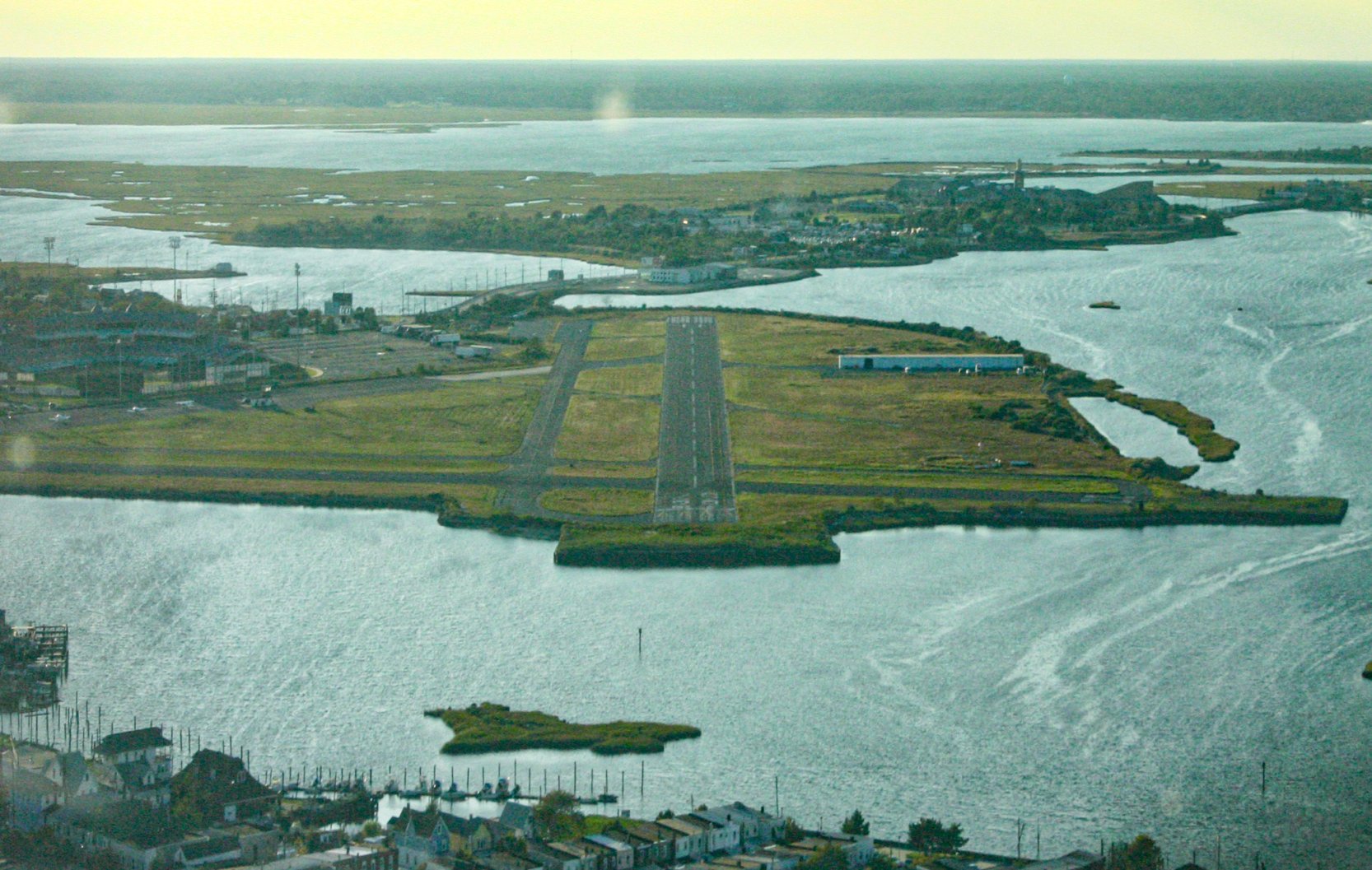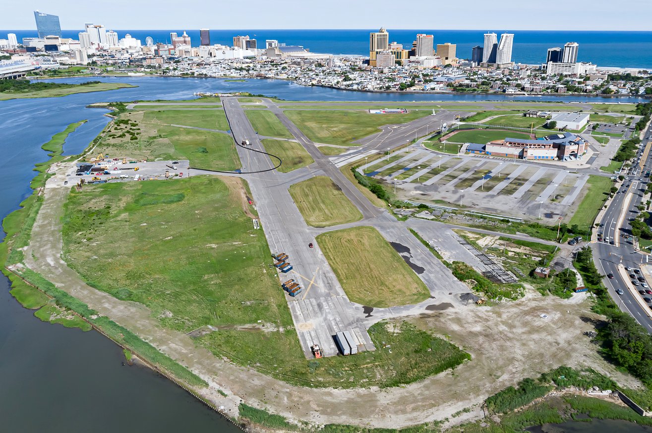An aerial view looking east at Atlantic City Municipal Airport,