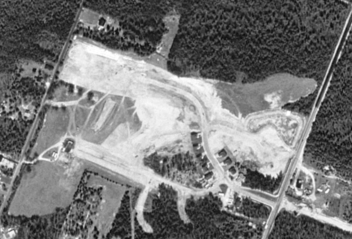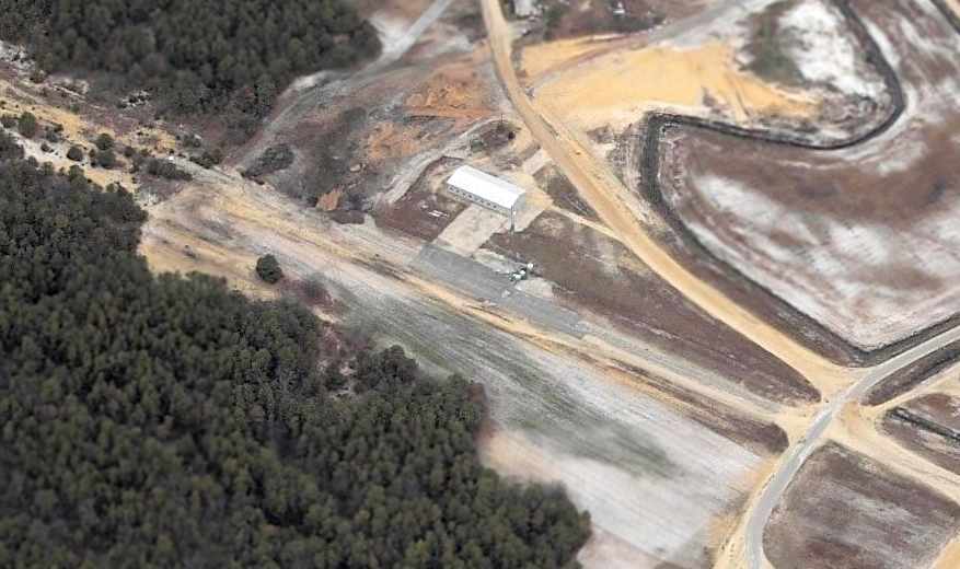 as a 2002 aerial view showed the northern portion of the runway had been dug out by a sand mining operation, a portion of which was flooded.