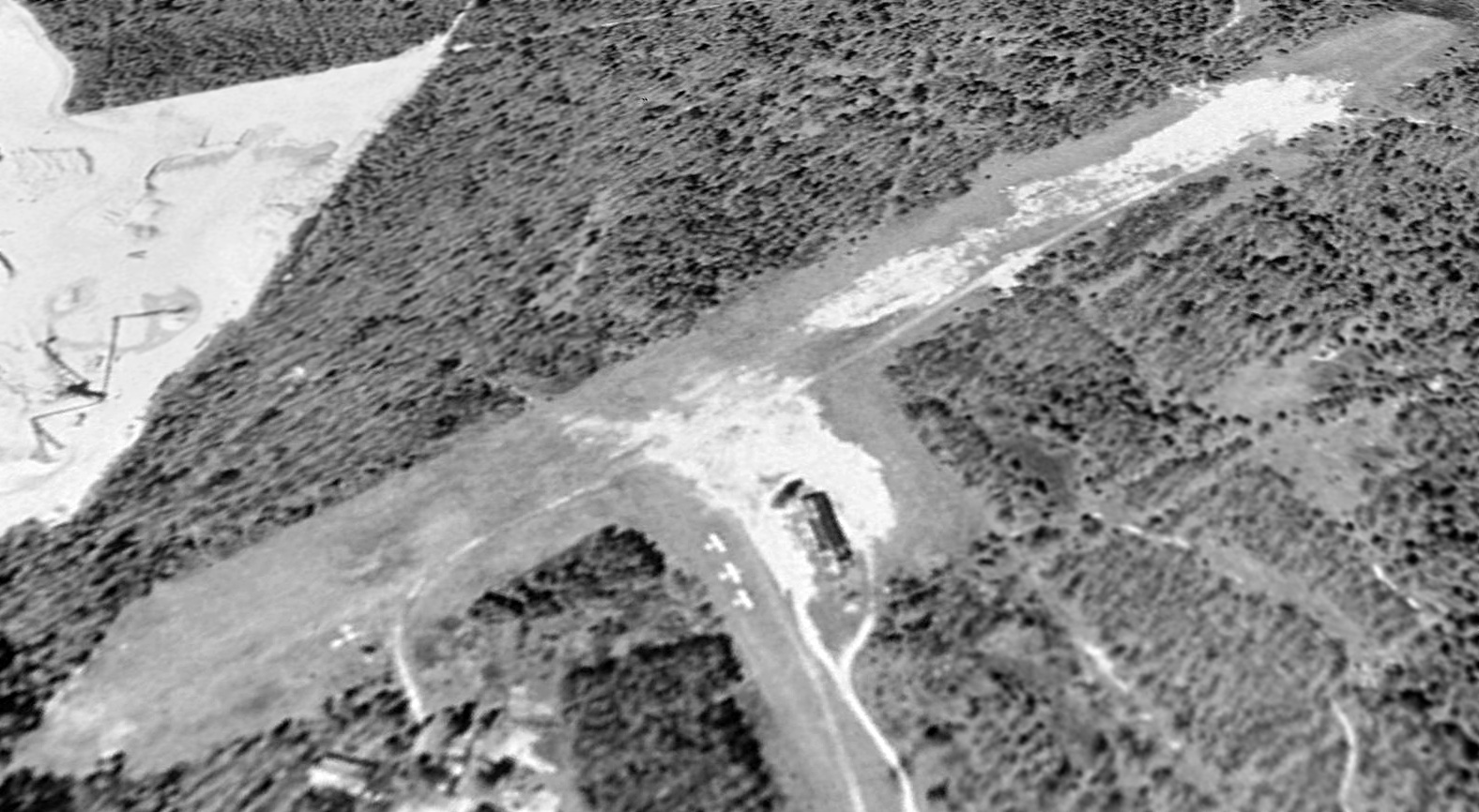 What may have been a former hangar is at bottom-right.