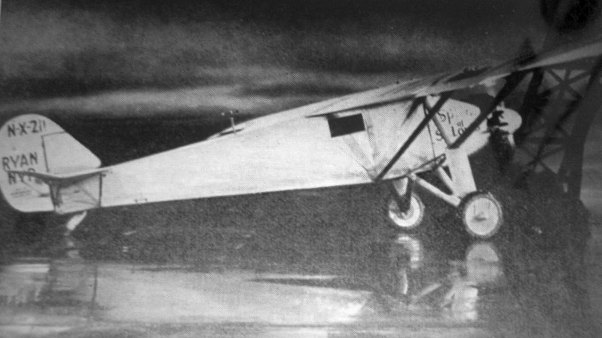 An October 1927 photo of Charles Lindbergh's Ryan NYP “Spirit of St Louis” at Bader Field.