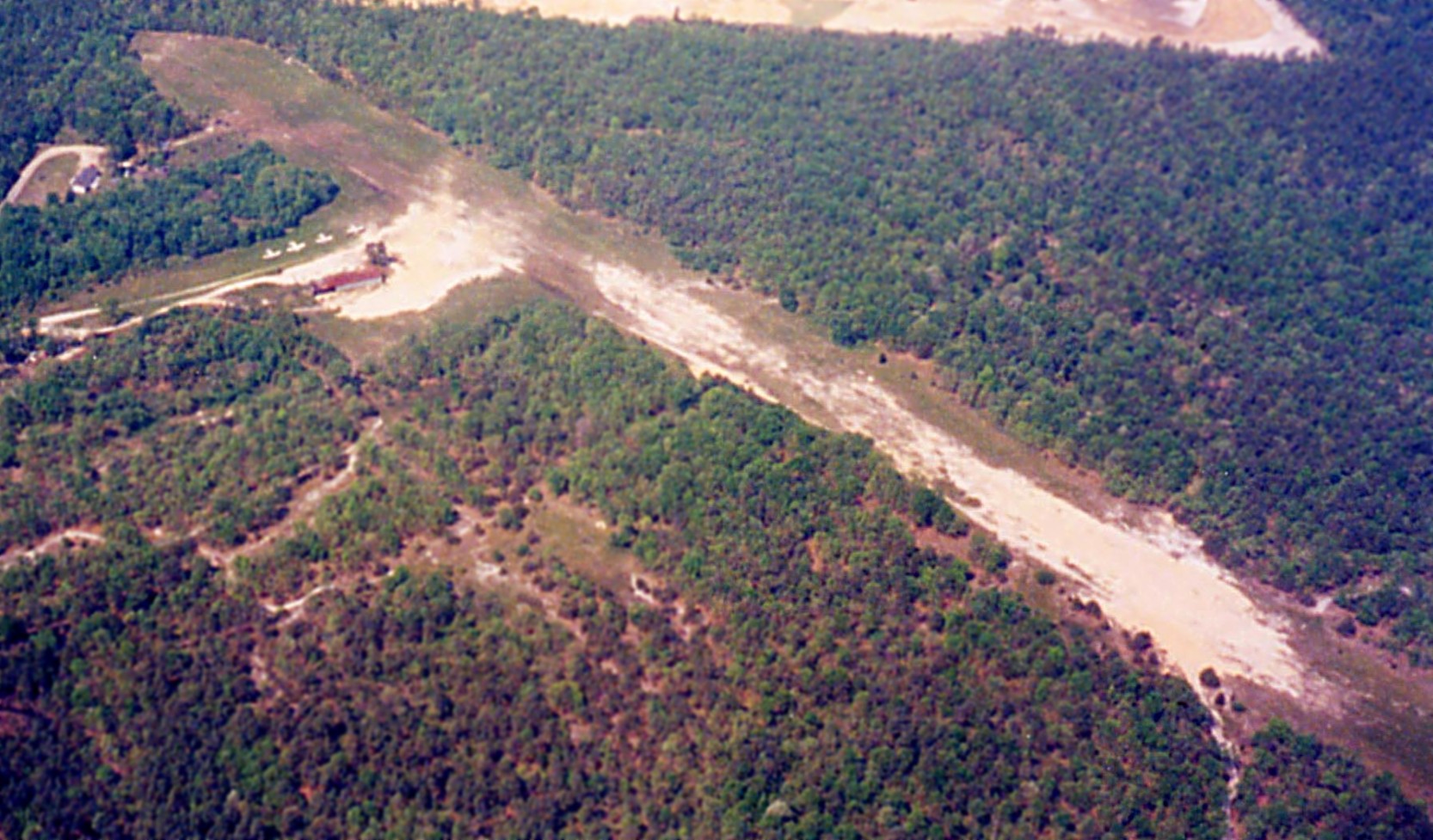 The earliest photo which has been located showing aircraft at Piney Hollow Airfield was a 1995 USGS aerial view looking northwest.